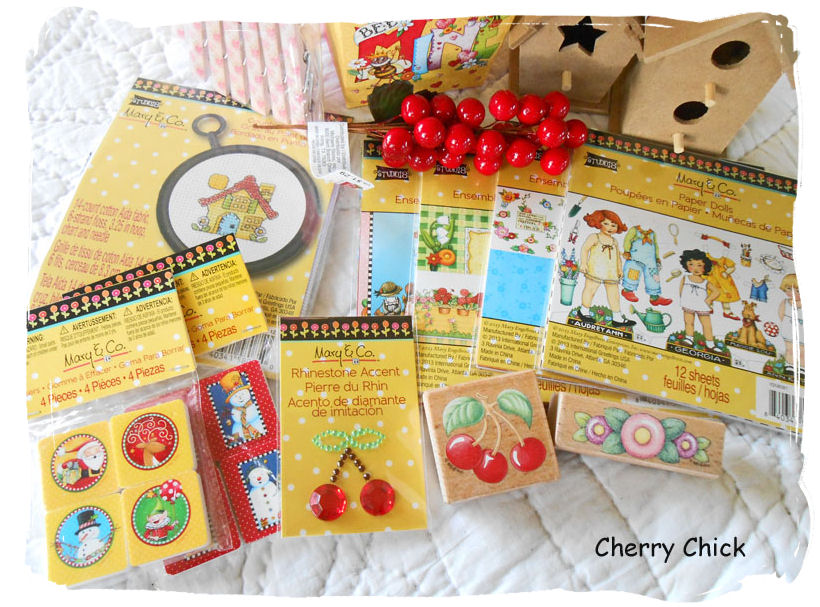 Lots of cute stuff in the $1.50 bins like the Mary Engelbreit stamps in the first photo, several designs of cross stitch kits, and the mini scrapbook paper packages.